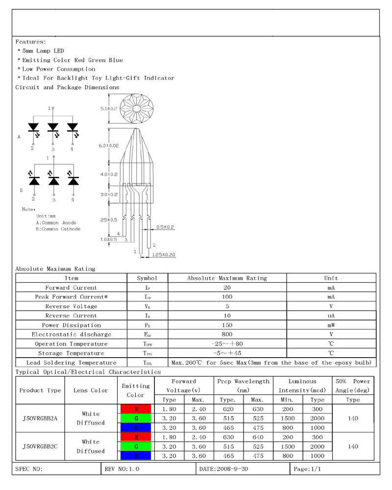 平头 雾状 5mm 5mm雾状平头全彩共阳 共阴